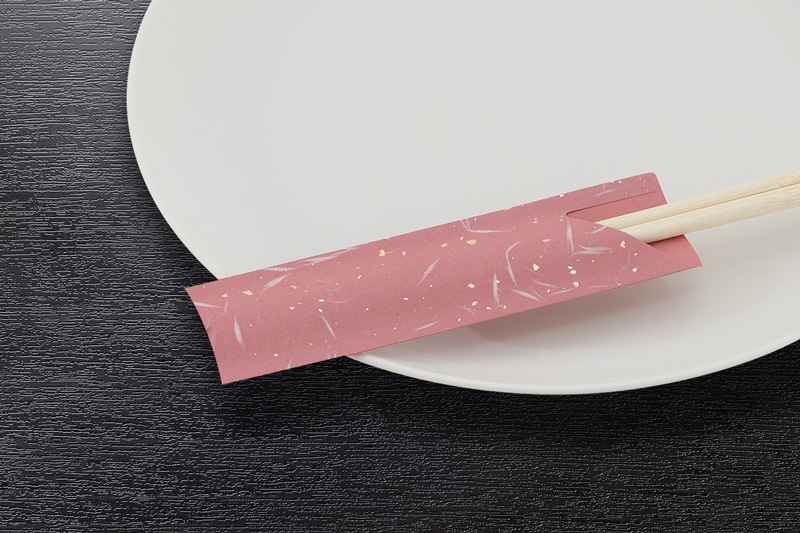 和紙風印刷用紙を用いたシンプルな箸袋です。食卓を品よく鮮やかに彩ります。