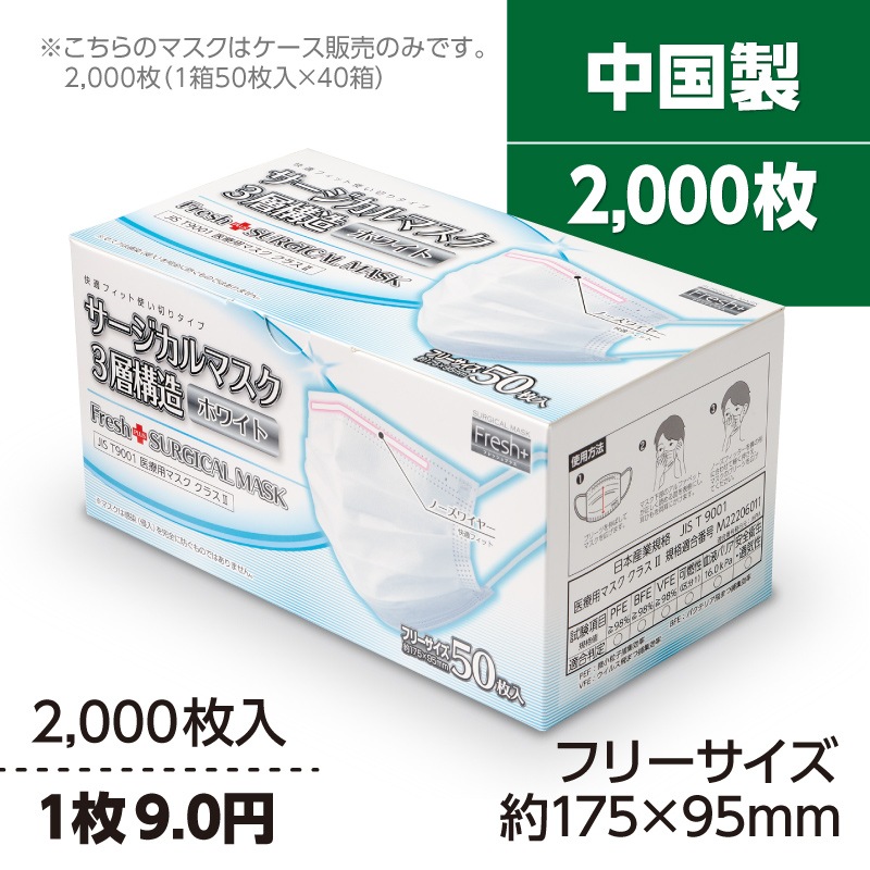 フレッシュプラス サージカルマスク3層構造 フリーサイズ(医療用マスク クラスⅡ)
