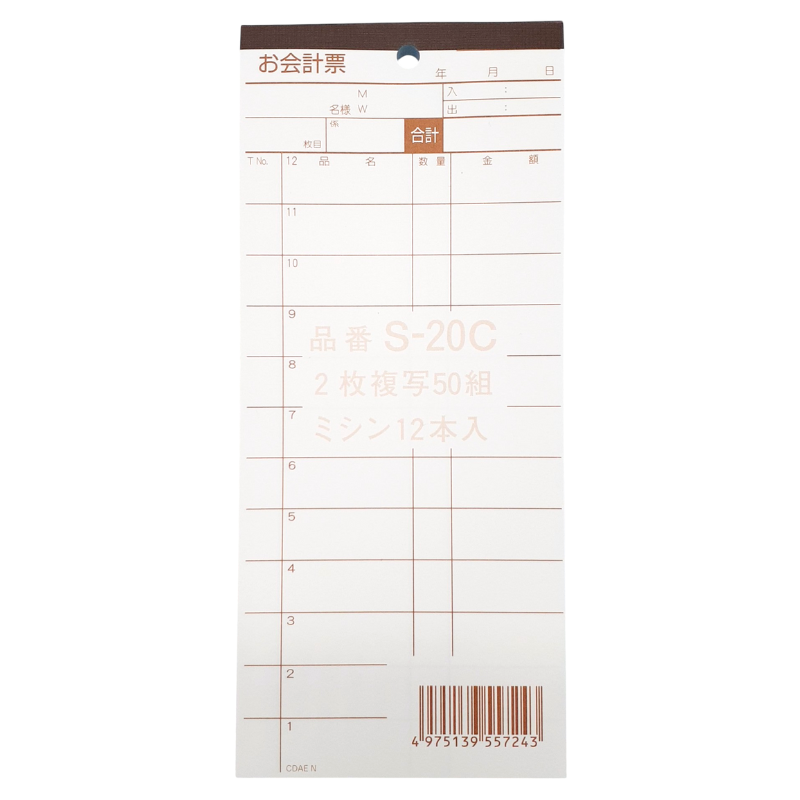 ●品番:S-20C●サイズ:85x195mm●行数:12行