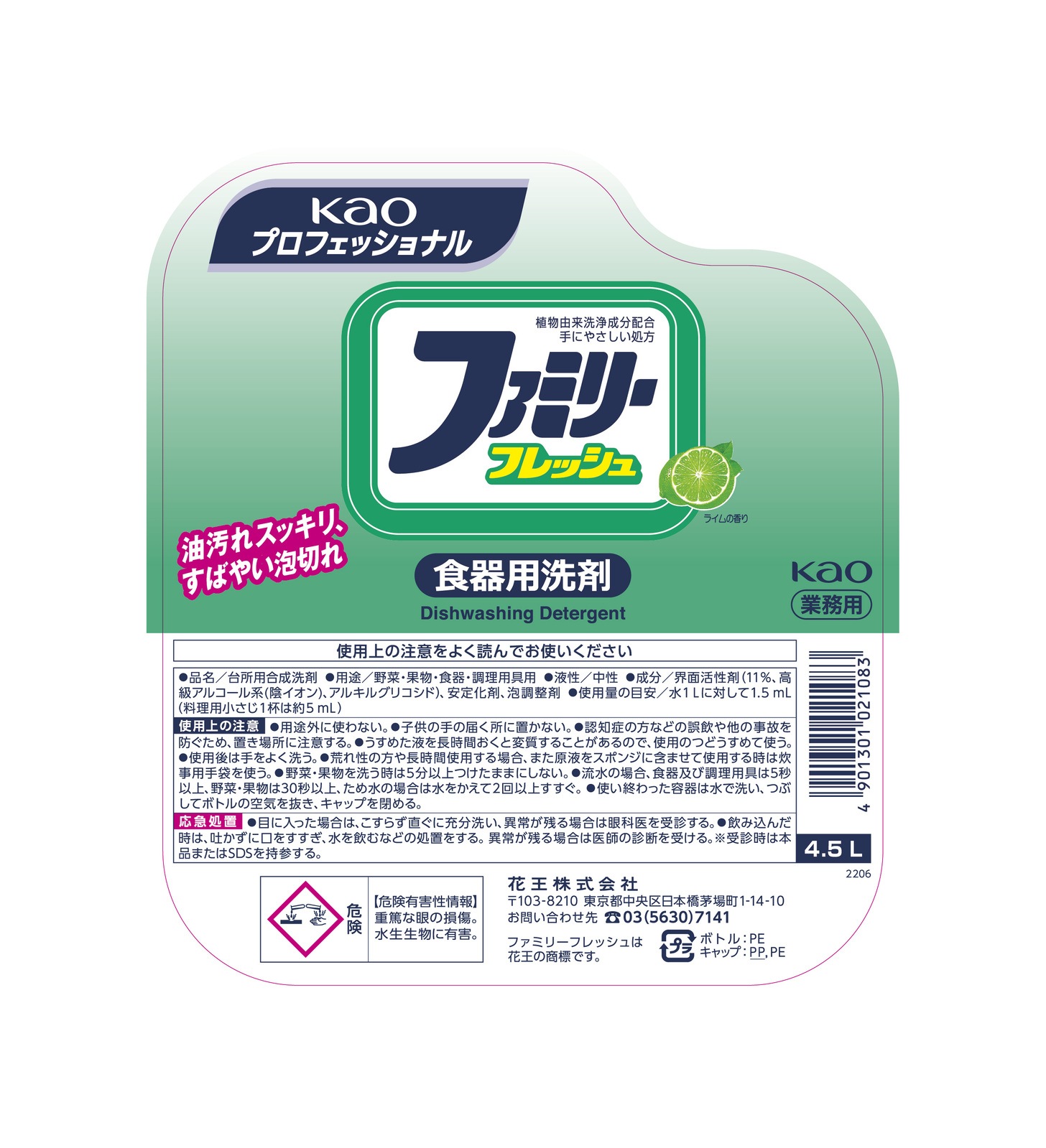 油汚れをスッキリ落とし、すばやい泡切れの食器用洗剤。たっぷり泡立ち、素早く泡切れてすすぎが簡単です。手にやさしい植物由来洗浄成分AG配合です。ライムの香り。原液使用。