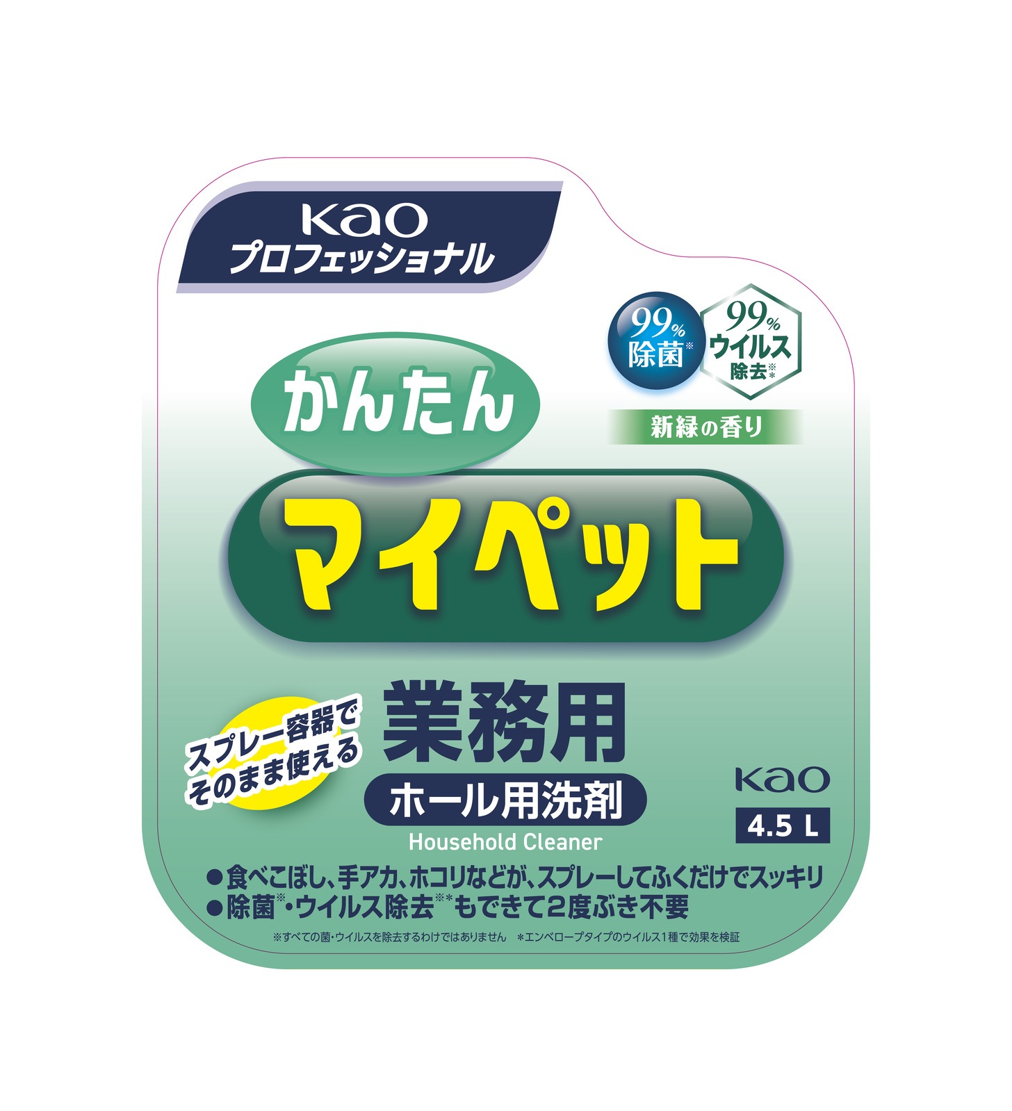 2度拭きふきいらずで除菌・ウイルス除去もできる、原液使用タイプのふき掃除洗剤です。