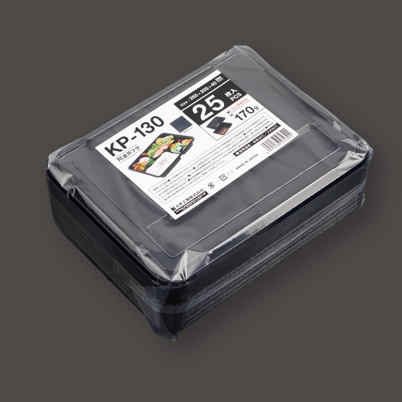 「KP-130 阿波共フタ」が少量パックになりました。テイクアウトやイベント用に最適です。必要な時に必要最小限を小ロットで購入できます。●サイズ:265x205x40mm●材質:PS●ごはん容量目安:約170g※電子レンジでは使用できません。