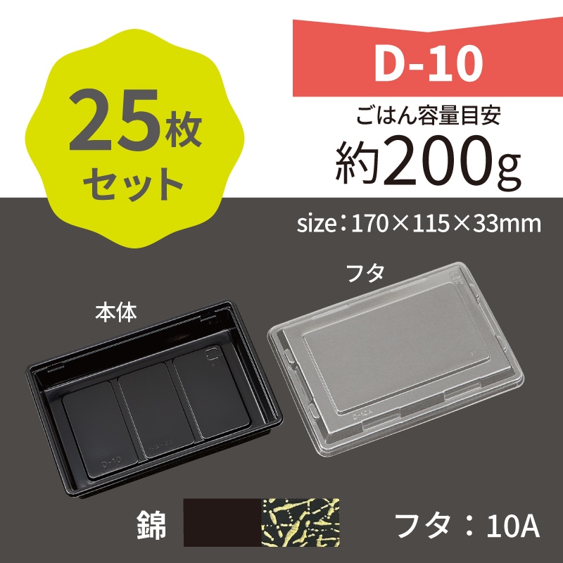 「富久折 D-10錦・10A」が少量パックになりました。テイクアウトやイベント用に最適です。必要な時に必要最小限を小ロットで購入できます。●サイズ:170x115x33mm●材質:PS●ごはん容量目安:約200g※電子レンジでは使用できません。