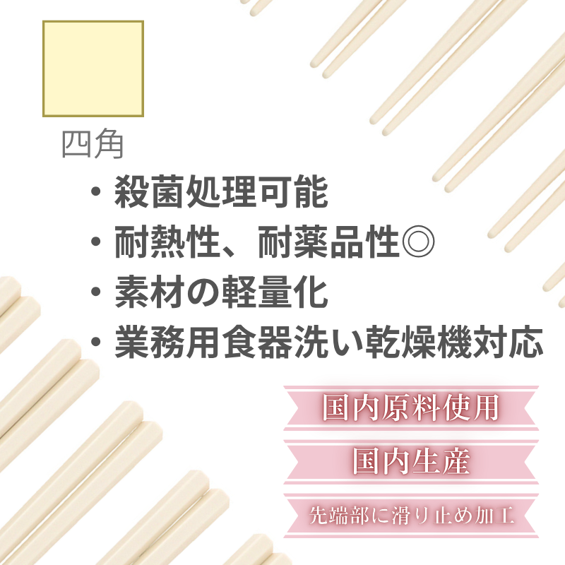 ・使用原料は国内原料を使用し、リユース箸の生産も日本国内で製造しております。