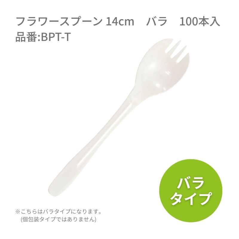 商品説明:植物由来の原料を25%以上配合したバイオマスプラスチックを使用石油資源の使用削減にも繋がる環境にやさしいカトラリー