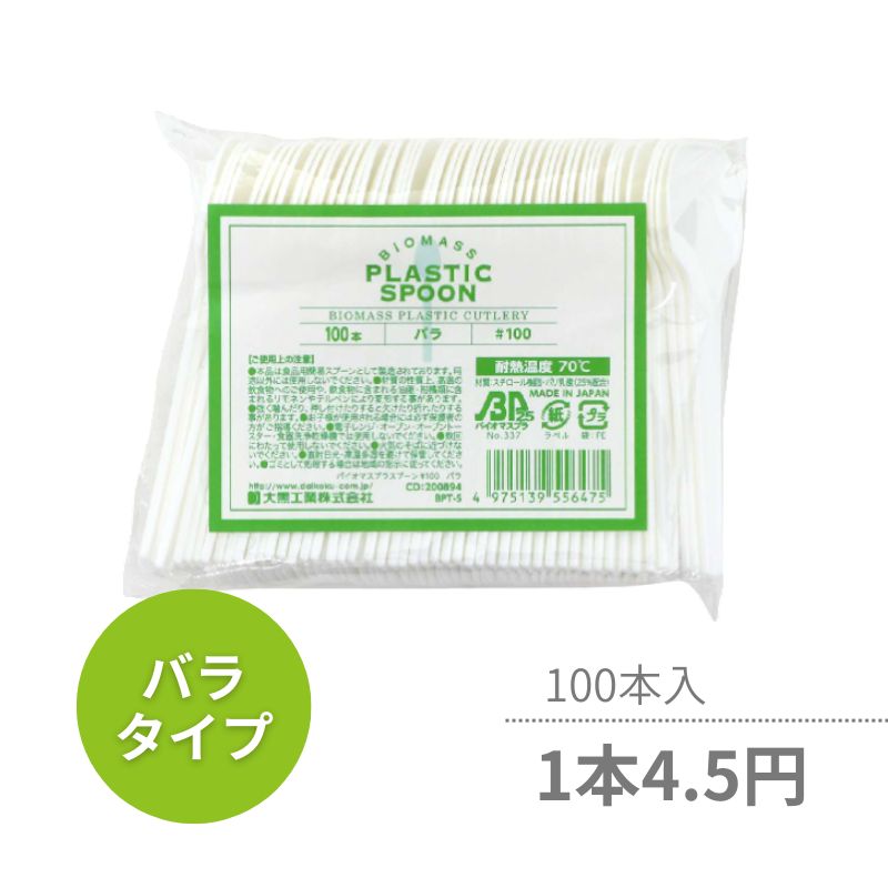 ●入数:100本●サイズ:10cm●材質:スチロール樹脂、ポリ乳酸(25%配合)●耐熱温度:70℃