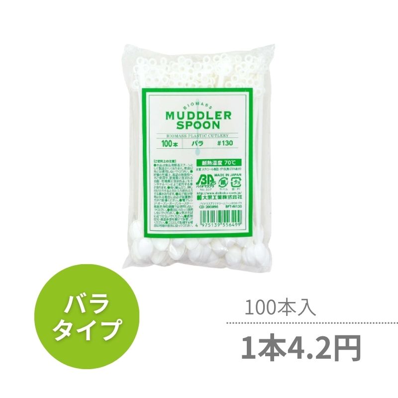 ●入数:100本●サイズ:13cm●材質:スチロール樹脂、ポリ乳酸(25%配合)●耐熱温度:70℃