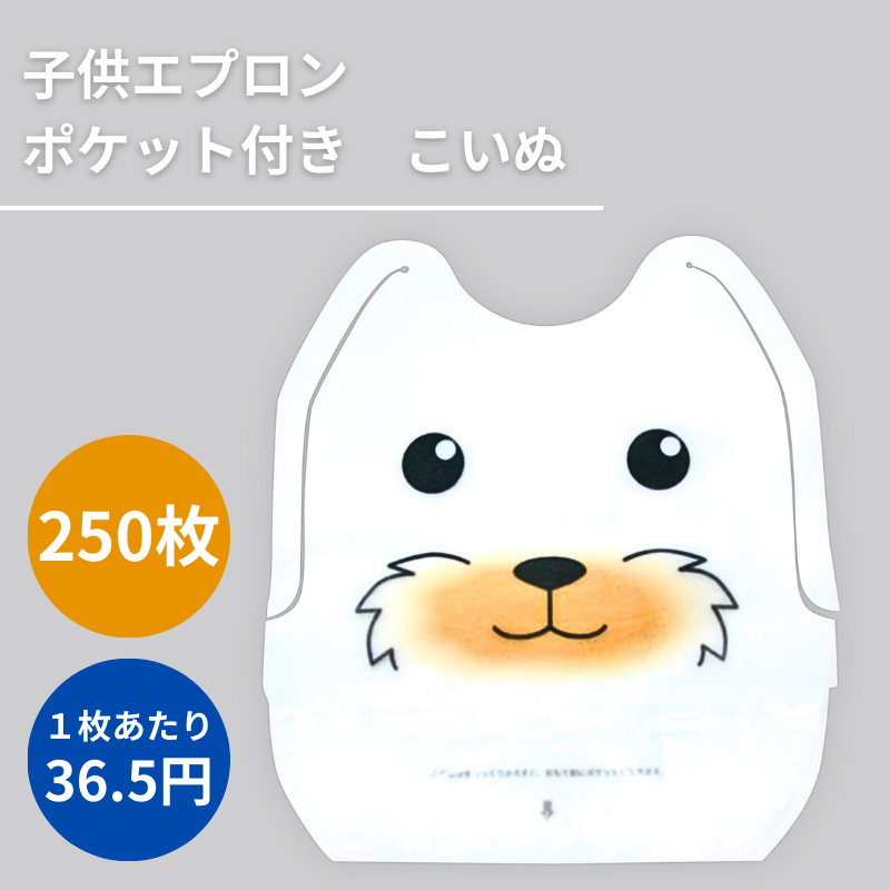 かわいらしい「こいぬ」柄のエプロンです。