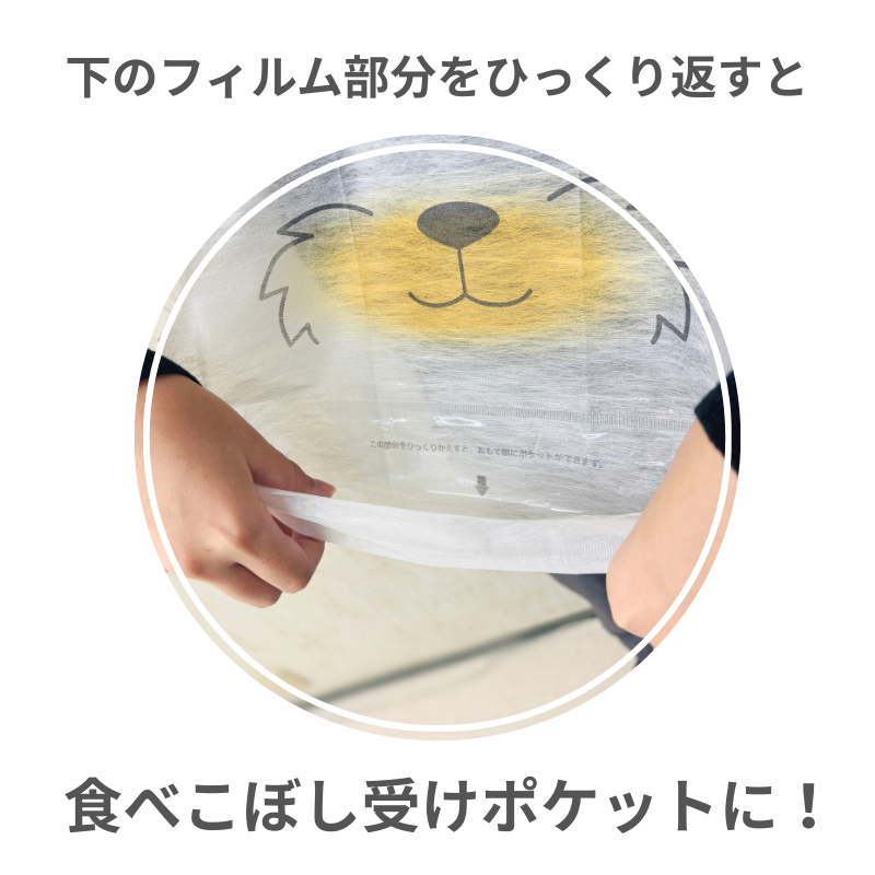 フィルム部分をひっくり返すと食べこぼし受けのポケットができます。