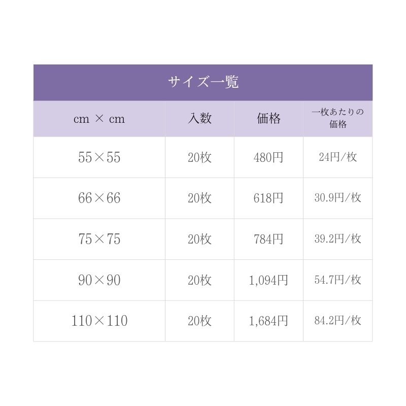 ●サイズ:・55x55㎝・66x66㎝・75x75㎝・90x90㎝