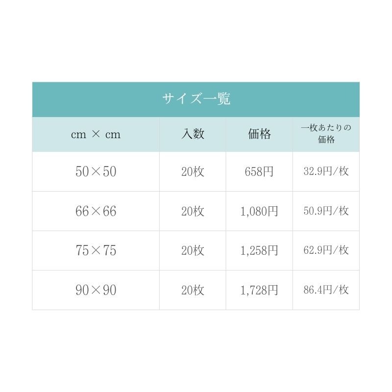 ●サイズ:・50x50㎝・66x66㎝・75x75㎝・90x90㎝
