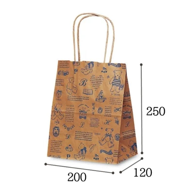 ●商品仕様:自動紐手提袋。安価で業務用向けの手提紙袋です。素朴なクマのぬいぐるみデザイン。雑貨、玩具、洋菓子店に人気です。小さなお菓子などのギフトにもピッタリのサイズ感。