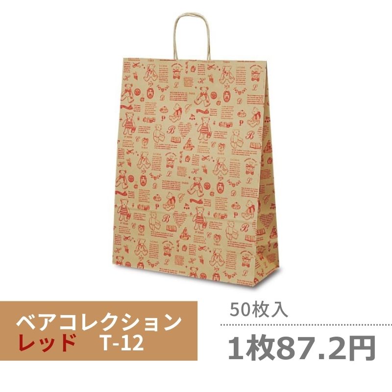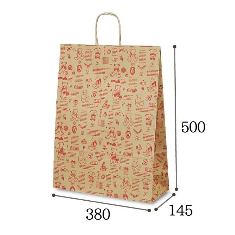 ●商品仕様:自動紐手提袋。安価で業務用向けの手提紙袋です。素朴なクマがのぬいぐるみがかわいいデザイン。