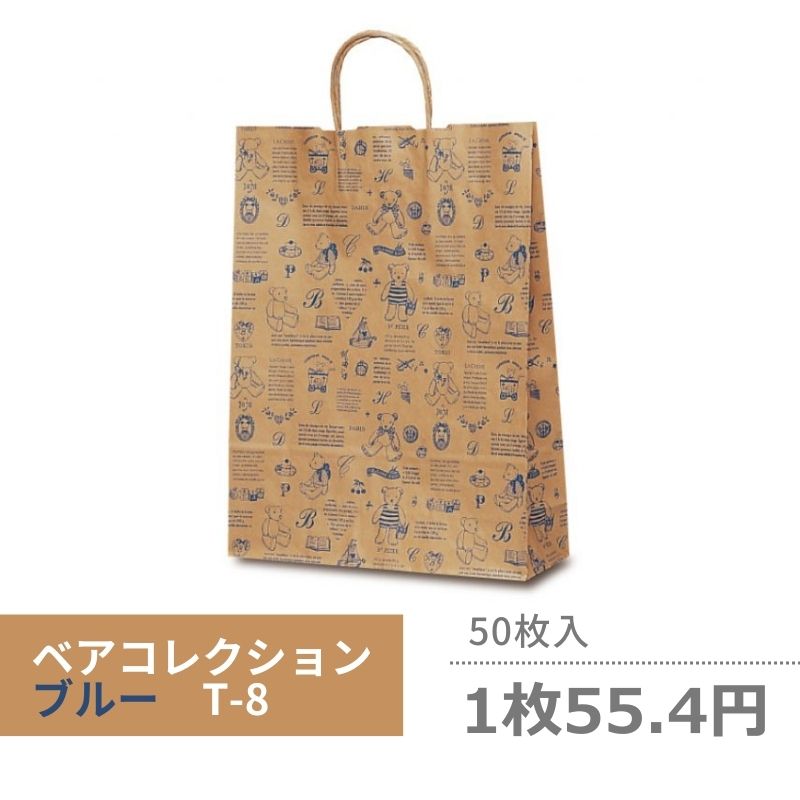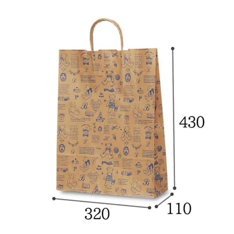 ●商品仕様:自動紐手提袋。安価で業務用向けの手提紙袋です。素朴なクマのぬいぐるみデザイン。