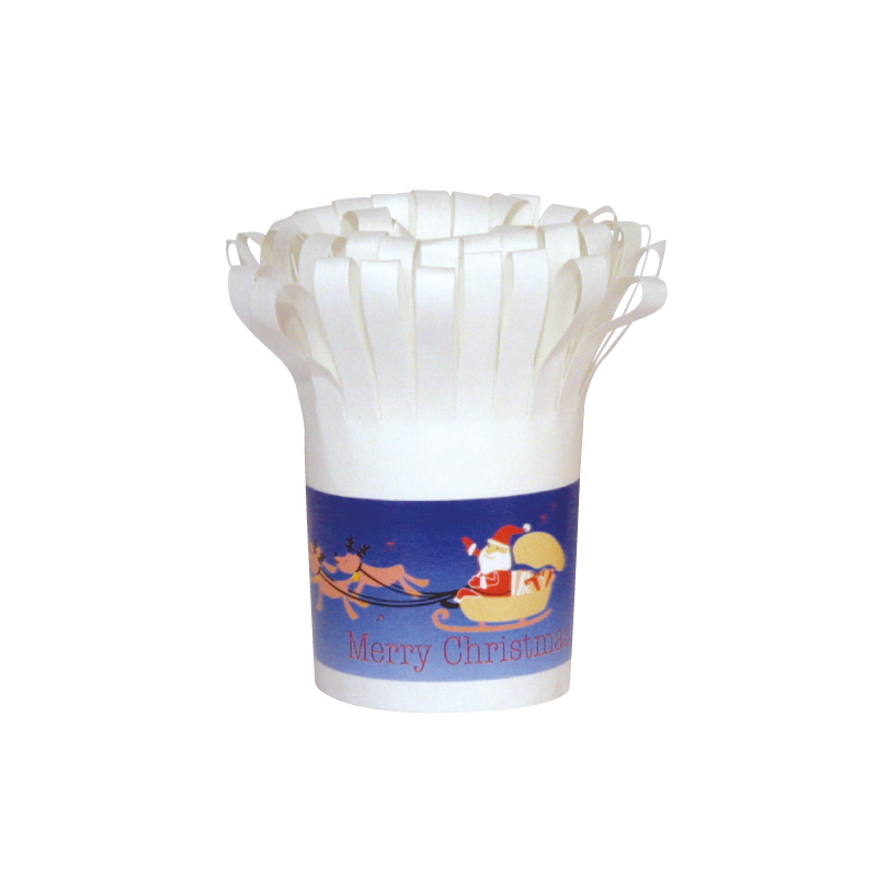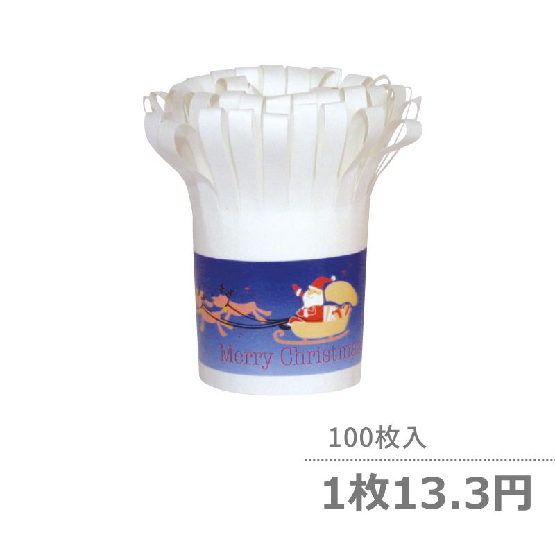 ●商品仕様:クリスマスのチキンなどの飾りに欠かせないチャップ花。料理をより華やかに引き立ててくれます。青いクリスマス柄の商品です。