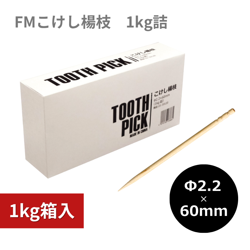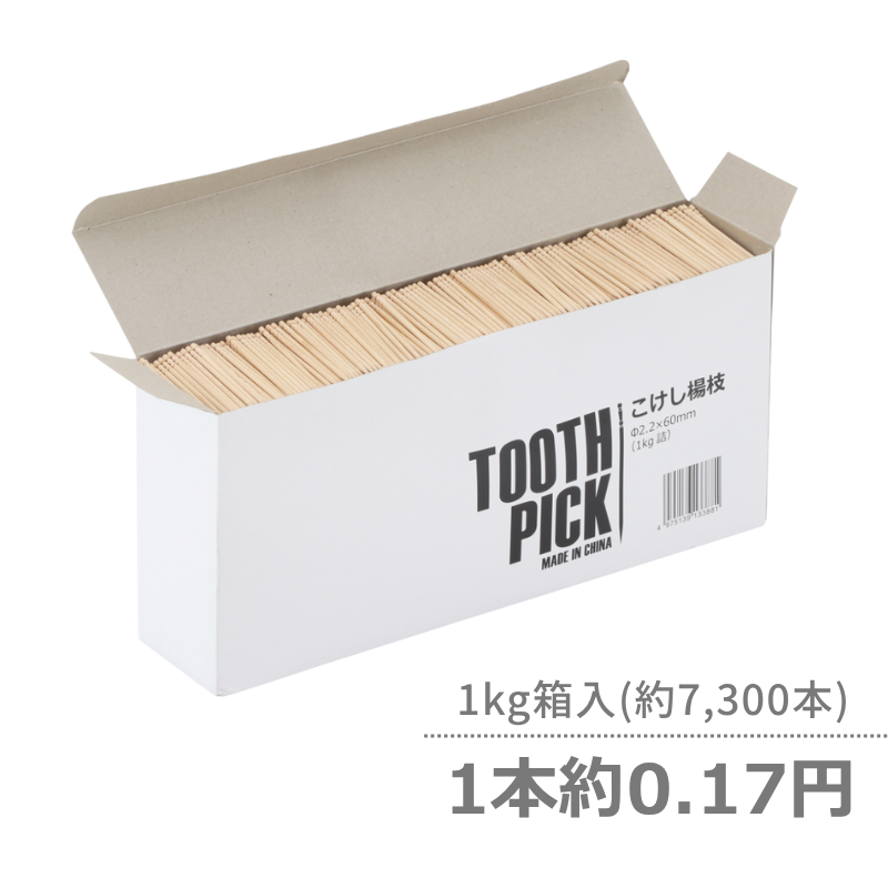 ●商品仕様:こけし楊枝(つまようじ)の箱入りタイプ。1㎏(約7300本)が包装なしの裸で箱詰めされた商品です。