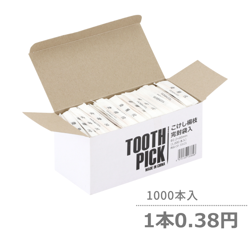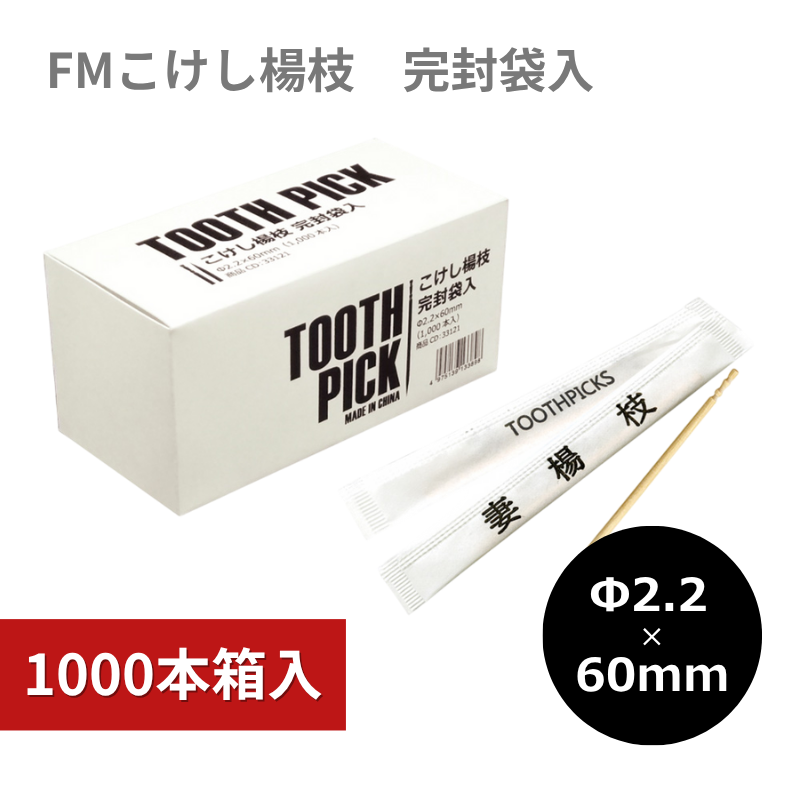 ●商品仕様:こけし楊枝(つまようじ)の箱入りタイプ。1000本の個包装タイプが箱詰めされた商品です。