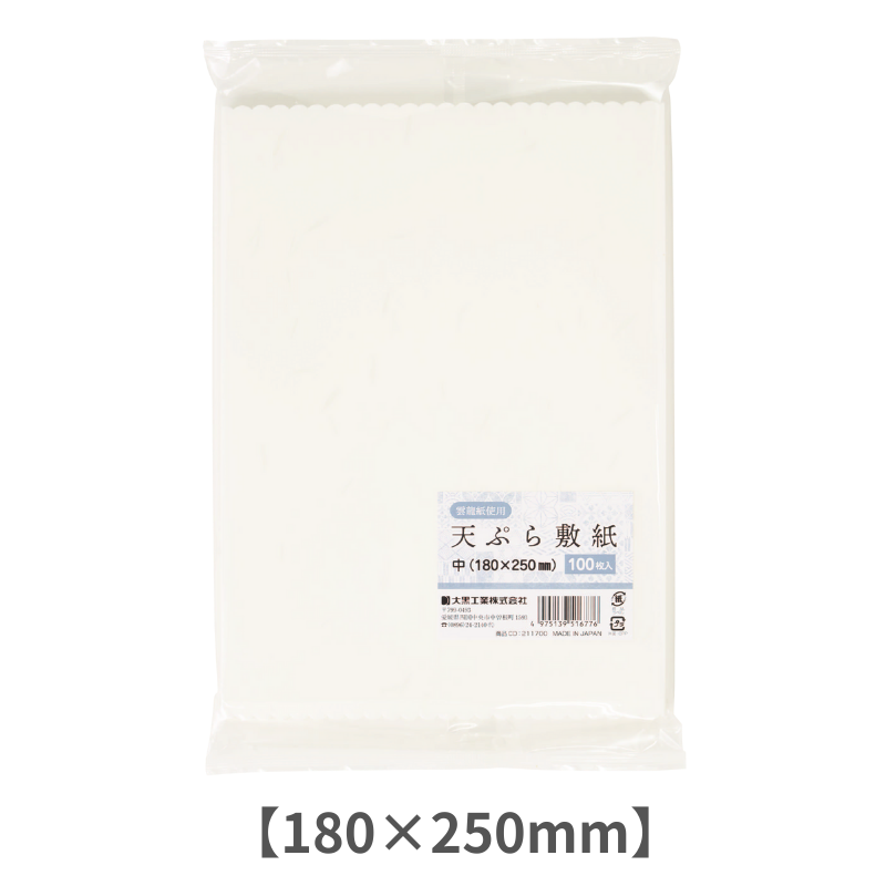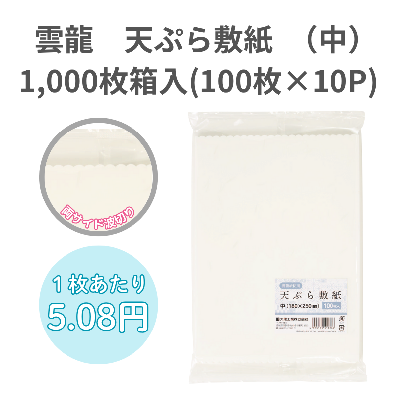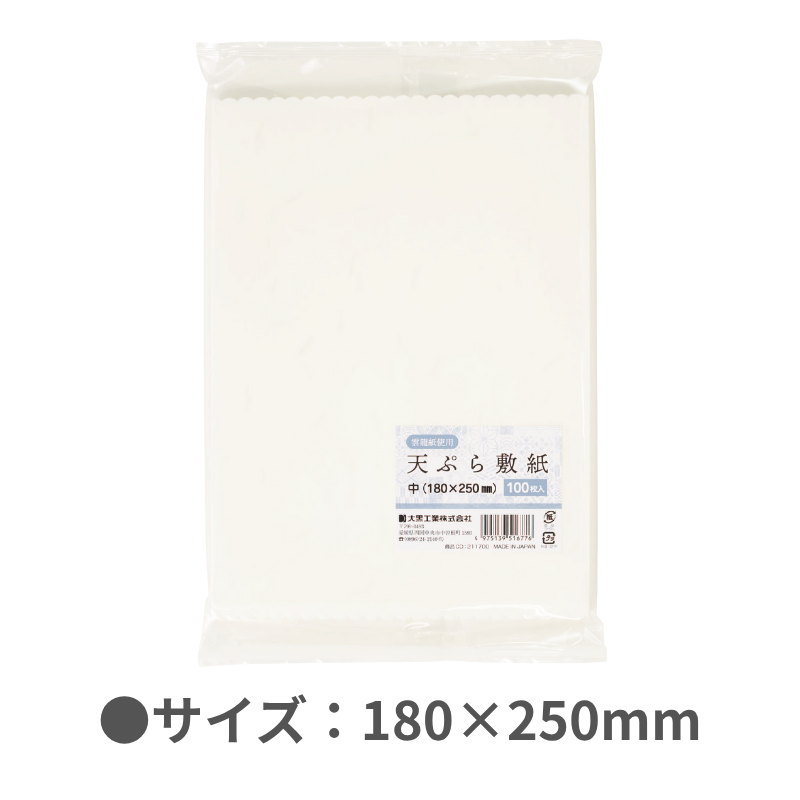 ・天ぷらや揚げ物の油をしっかり吸収し、料理の見た目をきれいに保つ使い捨て敷紙です。・清潔感のある盛り付けをサポートし、ご家庭はもちろん、テイクアウトやお惣菜のパック詰めにも最適。・使いやすいサイズで実用性も抜群です。