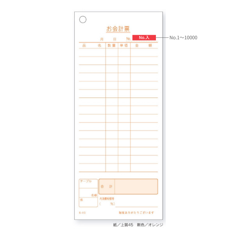 ●品番:S-03L●サイズ:75x177mm●行数:15行