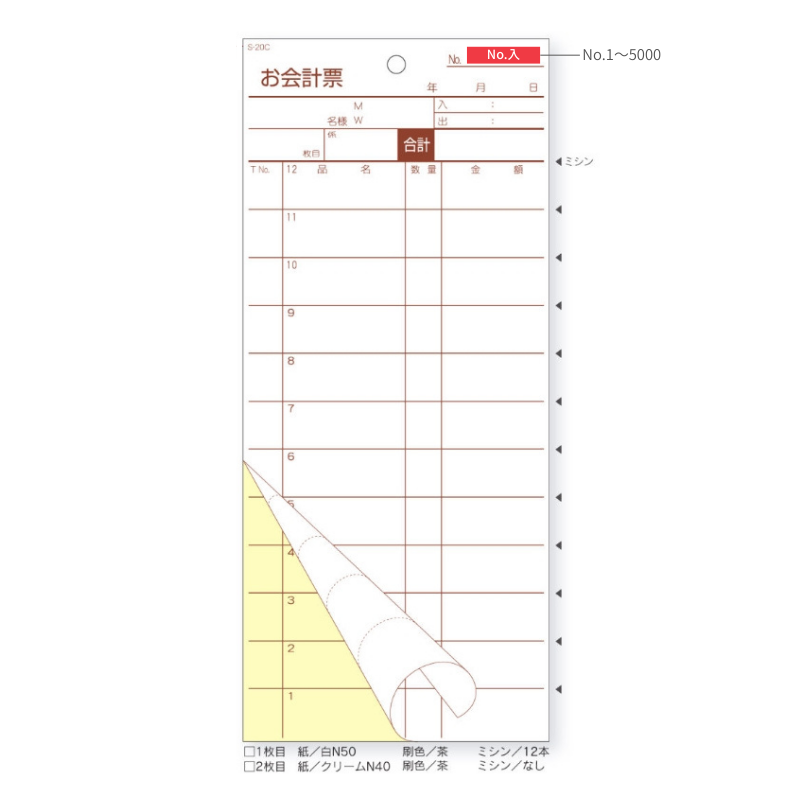 ●品番:S-20CL●サイズ:85x195mm●行数:12行