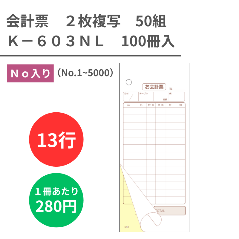 ●品番:K-603NL●サイズ:1枚目:75x182mm、2枚目:75x167mmmm●行数:13行