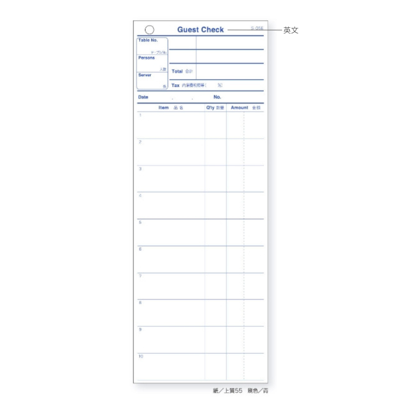 ●品番:S-05E●サイズ:78x210mm●行数:10行