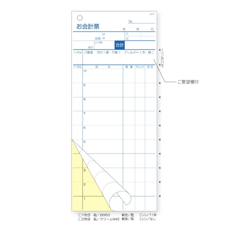 ●ミシン目:11本