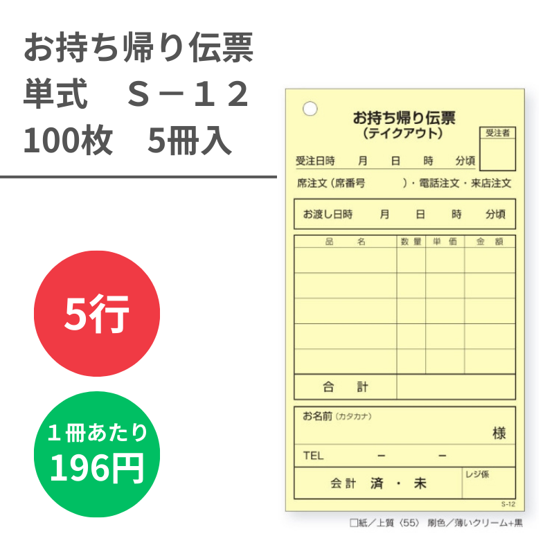 ●品番:S-12●サイズ:85x150mm●行数:5行