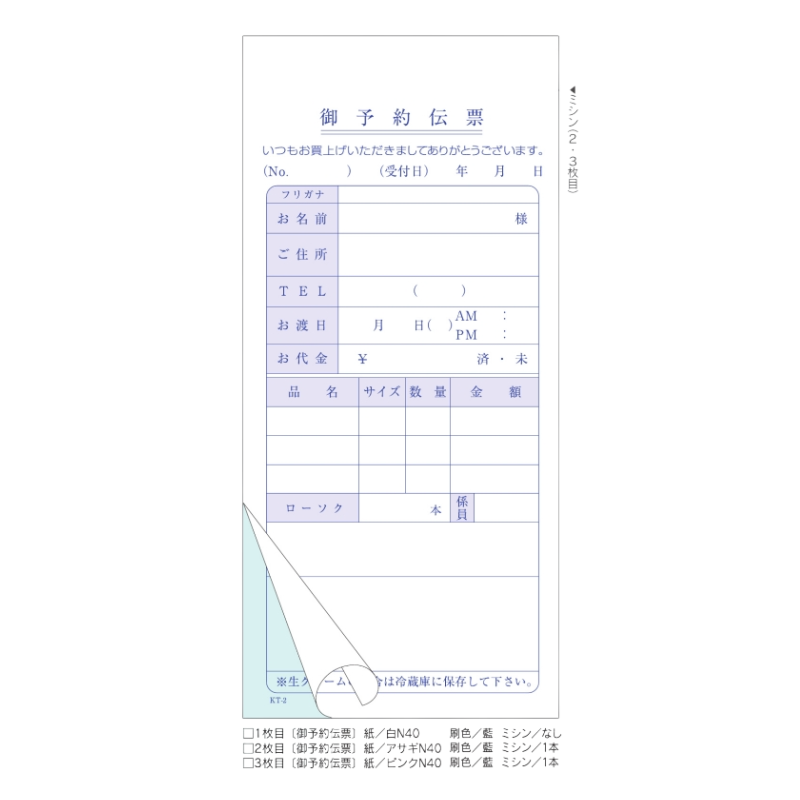 ●用途・備考:ケーキご予約伝票 巻き下敷付き