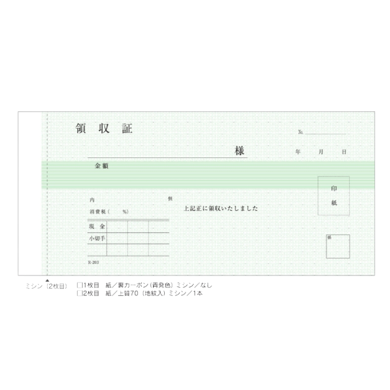 ●用途・備考:領収証(小切手判) 巻き下敷付き 裏カーボン紙