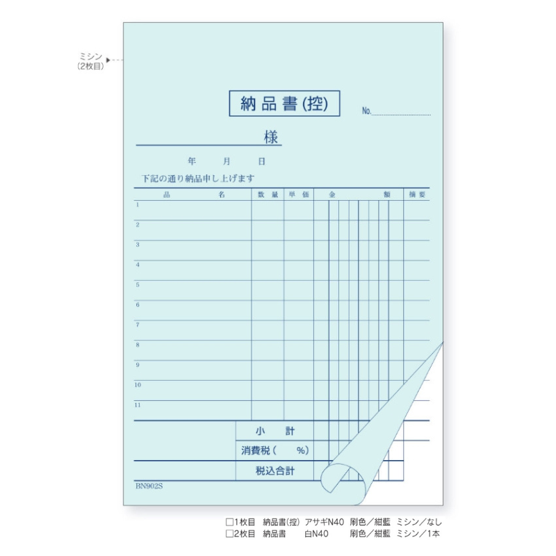 ●用途・備考:納品書(B6) タテ型 消費税対応 巻き下敷付き