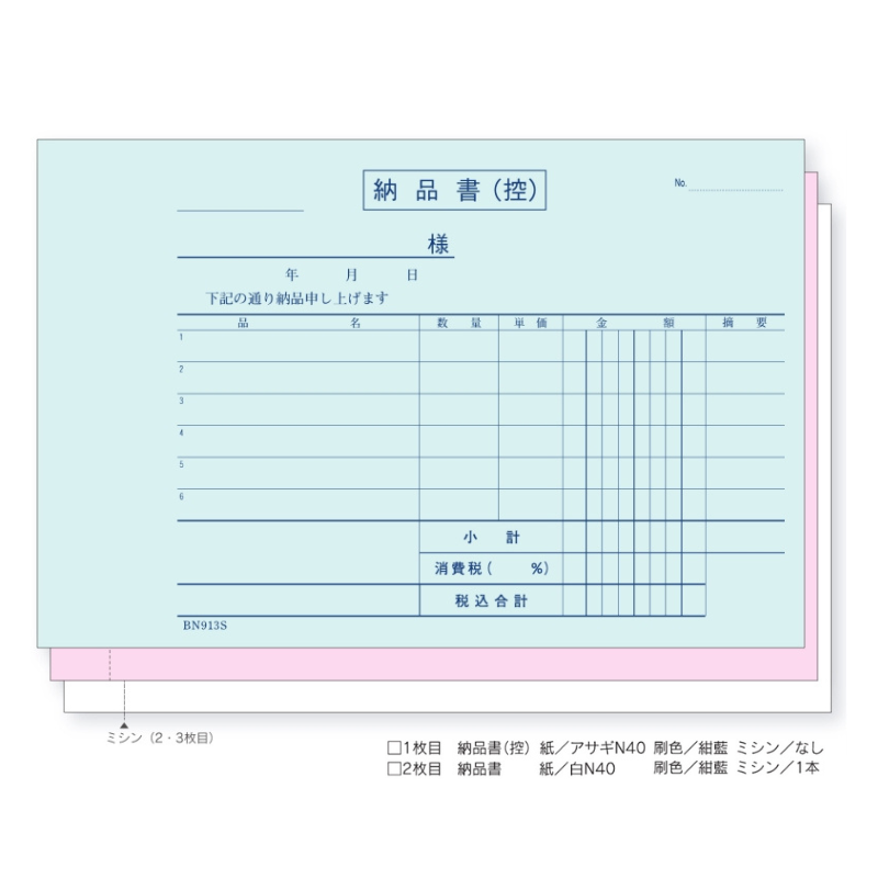 ●用途・備考:納品書(B6) ヨコ型 消費税対応 巻き下敷付き
