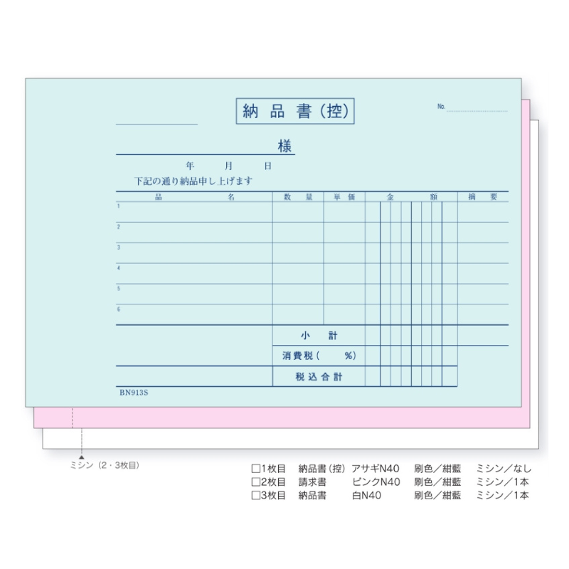 ●用途・備考:納品書(B6) ヨコ型 消費税対応 請求書付き 巻き下敷付き