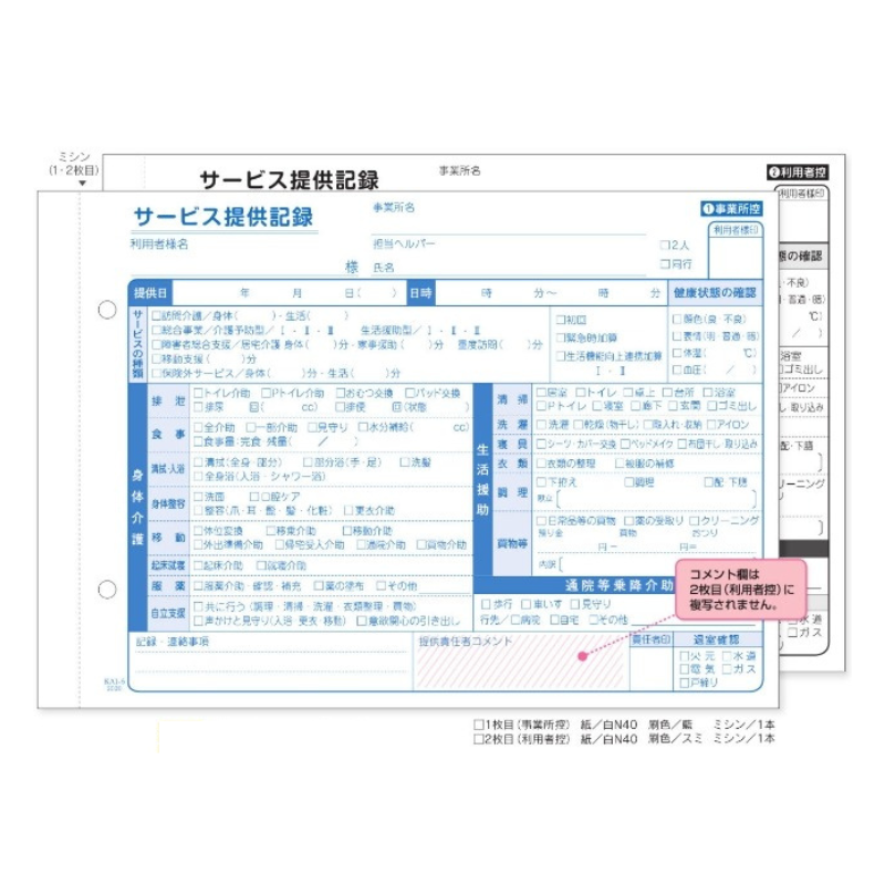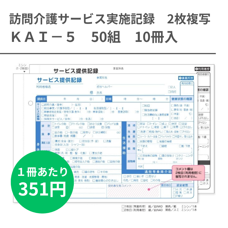 ●用途・備考:訪問介護サービス実施記録(A5)