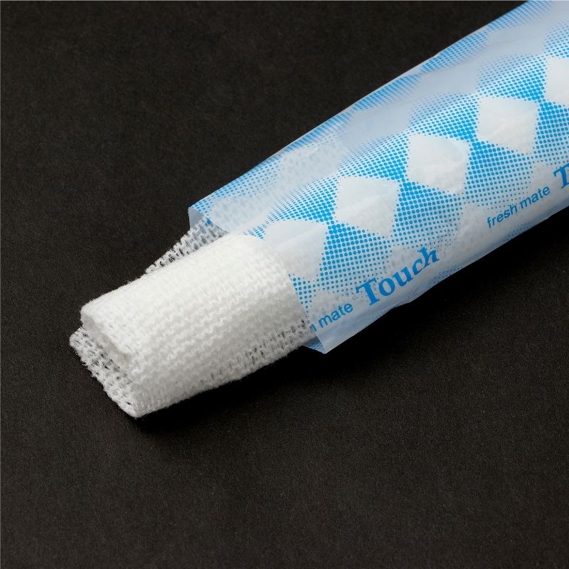 やさしいブルーの菱形模様が上品な印象のおしぼり。パルプ/レーヨンのスパンレース不織布で、保水性と引張強度に優れており、メッシュタイプで心地よい手触りです。お食事の前、アウトドアなど様々なシーンでお使い下さい。